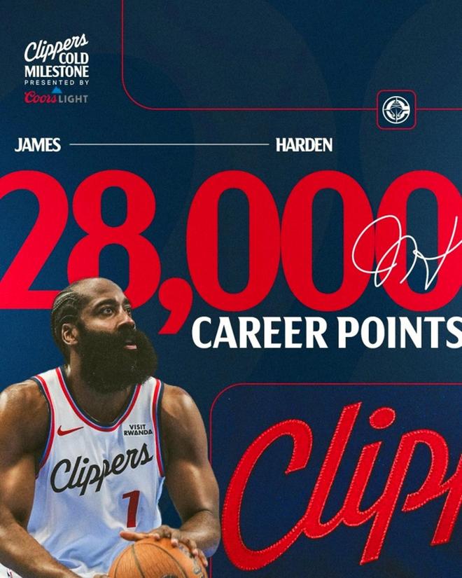 凭借这样的表现,哈登成为NBA历史上第11位生涯总得分突破28000分大关的球员,接下来将追赶第十名安东尼的28289分。