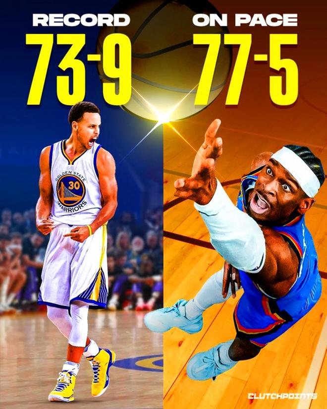 面对交出如此夸张表现的雷霆队,美媒《Clutch Points》也晒图预测这支雷霆队如果可以保持目前的势头,将有希望单季拿下77胜5负战绩,一举刷新勇士队保持的NBA单赛季73胜历史纪录。