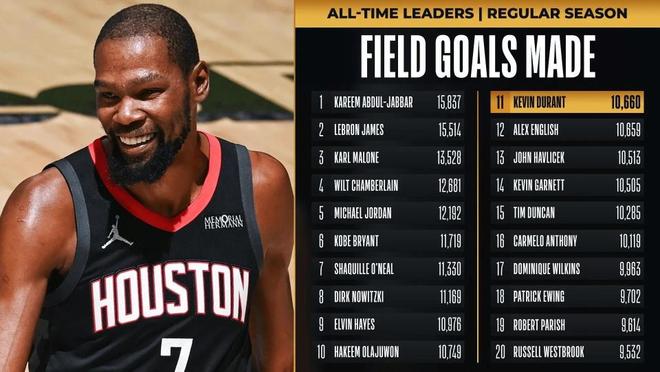 北京时间12月1日,NBA常规赛火箭客场对阵爵士,杜兰特缺席两场后回归复出。火箭一边倒碾压爵士逐步扩大35+领先优势,比赛早早提前失去胜负悬念,最终火箭129-100轻松战胜爵士收获3连胜。杜兰特生涯进球数超过英格利什,升至NBA历史排行榜第十一位,在他前面的是火箭名宿奥拉朱旺(10749个)。